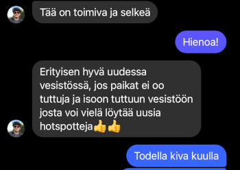 Vesialueesi syvänteiden reunat löydät karttaan merkityistä punaisista hotspoteista, missä petokalat usein viihtyvät.