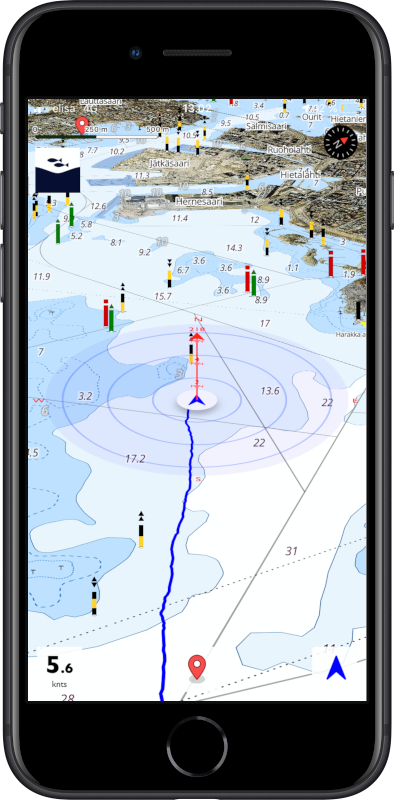 Sovellus on helppokäyttöinen veneillessä. Se näyttää sijaintisi kartalla ja liikuttaessa nopeuden sekä suunnan. Näet myös matka-aikasi.